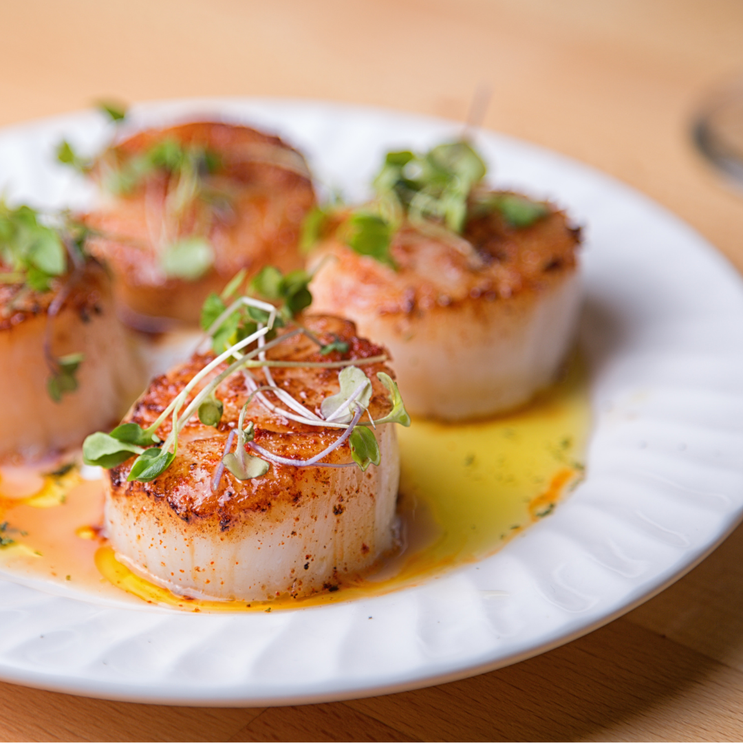 Working in batches, add the scallops and sear on each side until lightly golden brown, about 1 minute per side.